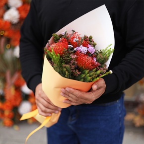 Букет "Капс" из лейко и экзотики