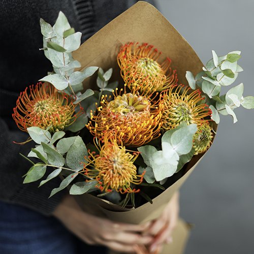 Букет "Гости из будущего" из 5 лейко и эвкалипта