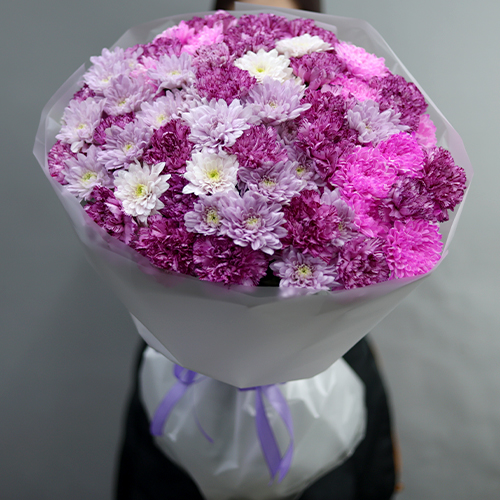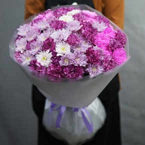 Букет "Лавандовый пунш" из кустовых хризантем и диантусов
