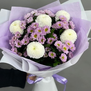 Букет "Магнолия" из хризантем сантини и Момоко