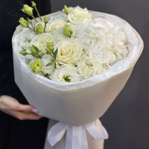Букет "Нега" из Голландской гортензии, роз и эустом