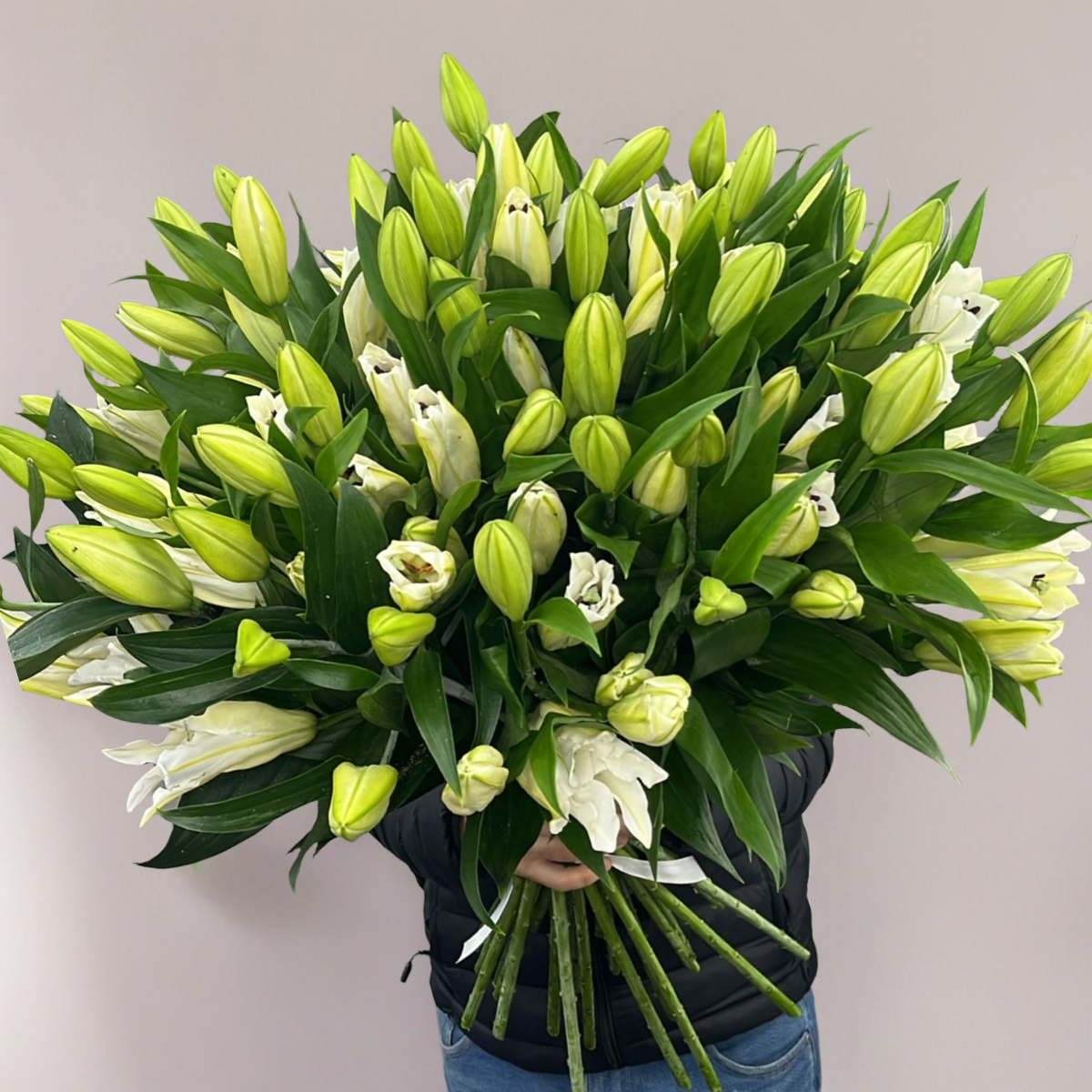 Объемный букет из 27 ароматных белых лилий