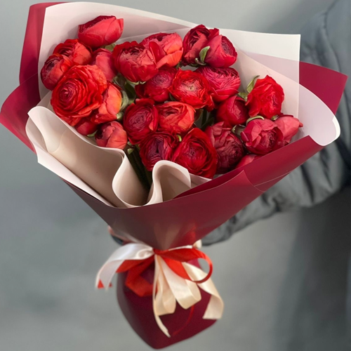 Букет из 21 красного ранункулюса
