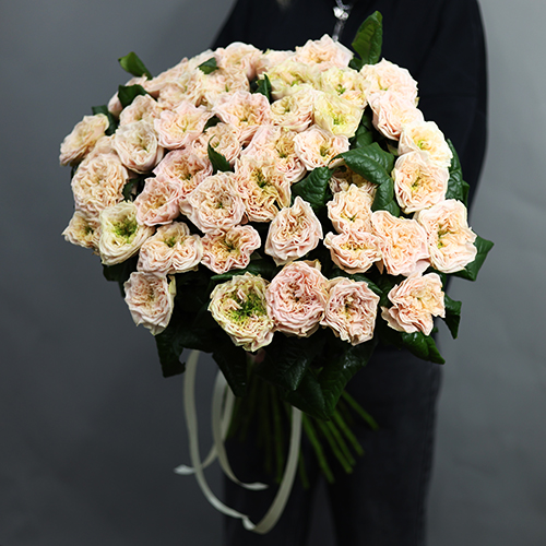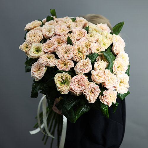 Букет из 35 кремовых махровых пионовидных роз (70 см)
