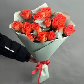 Букет из 15 морковных роз с эвкалиптом (50 см)