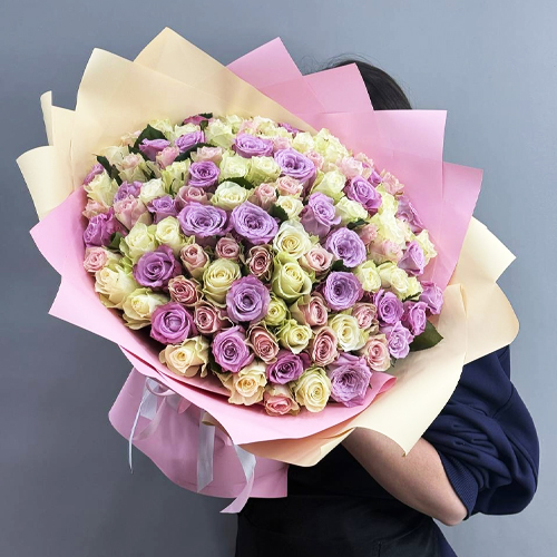 Букет из 101 розы пастельный микс и роз Меритим (40 см)